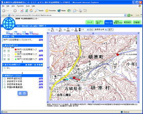 この機能は、MapInfo Professionalで作成した主題図を、ワークスペースファイル(.wor)を読み込み、データベースに登録しWebで公開するものです。このシステムは、MapInfo Discoveryと同様ものであるが、当時はDiscoveryが発売されておらず、またDiscoveryでは不可能なWeb公開やカスタマイズなど、数多くの優位点があります。