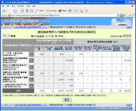 この受入可能量と再生資材の在庫量は、別途リスト表示することが可能であり、そのリストをCSV形式でダウンロードし、建設計画に利用することもできます。