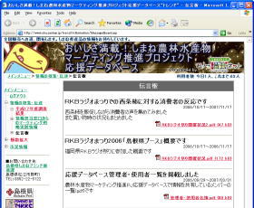 「おいしさ満載!しまね農林水産物マーケティング推進プロジェクト応援データベース“トレンド”」は、県職員や地域普及部、JA(農協)などの関係者に県の「しまねブランド」の戦略情報やリサーチ情報の提供および、農産物の出荷にあたっての日々の市況情報の提供を行っています。