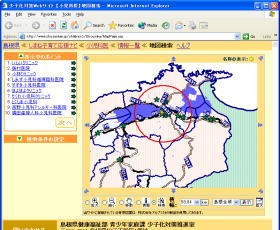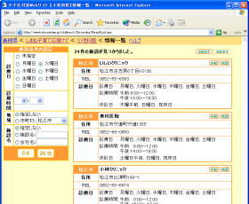 検索結果などから、[地図表示]ボタンをクリックすると、マップに施設の所在地がポインティングされ、一目で施設の場所を把握することができます。